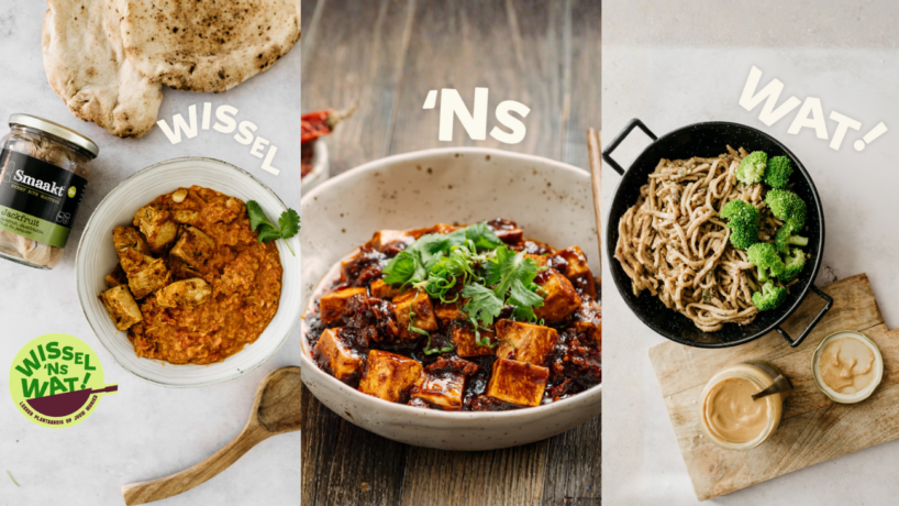 Meedoen is eenvoudig. Begin klein door je yoghurt te vervangen door een plantaardig alternatief, kies hummus of notenspread in plaats van kaas, maak een maaltijd met linzen of kikkererwten in plaats van vlees of gebruik biologische noten en granen als basis voor je gerecht. Op zoek naar nog meer inspiraties en wissels? Neem dan even een kijkje op de website van Wissel ‘ns Wat!